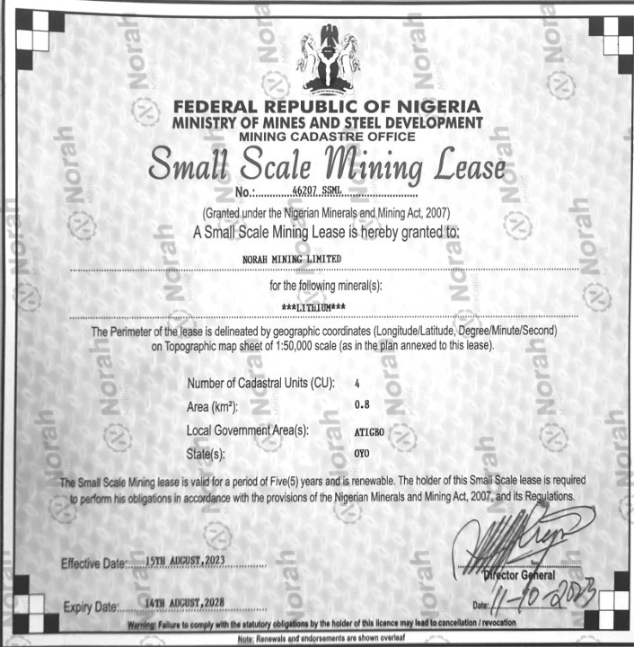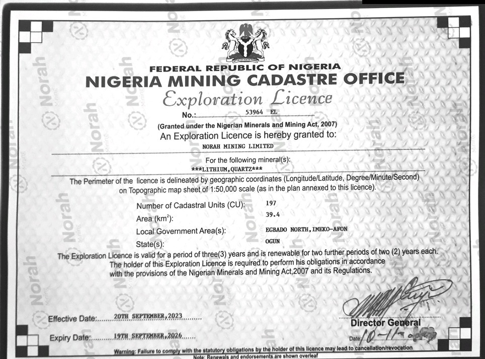 Norah Mining Ltd holds 86 square kilometers of mining licenses across Nigeria. The country’s rapidly developing, globally competitive, high-grade lithium deposits are set to propel it into a new era as a global energy powerhouse.